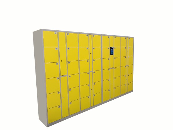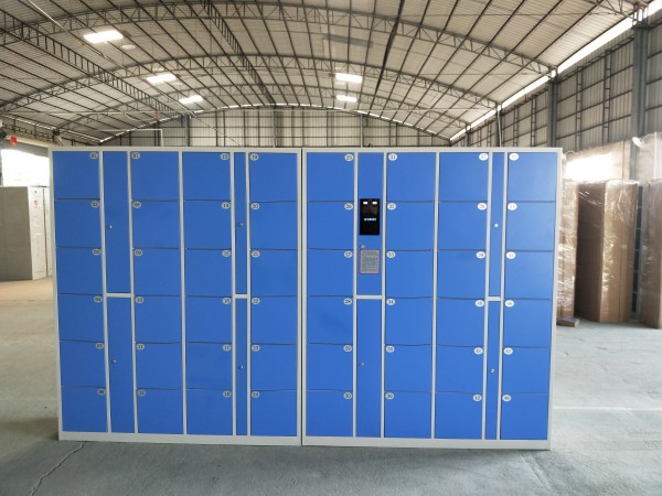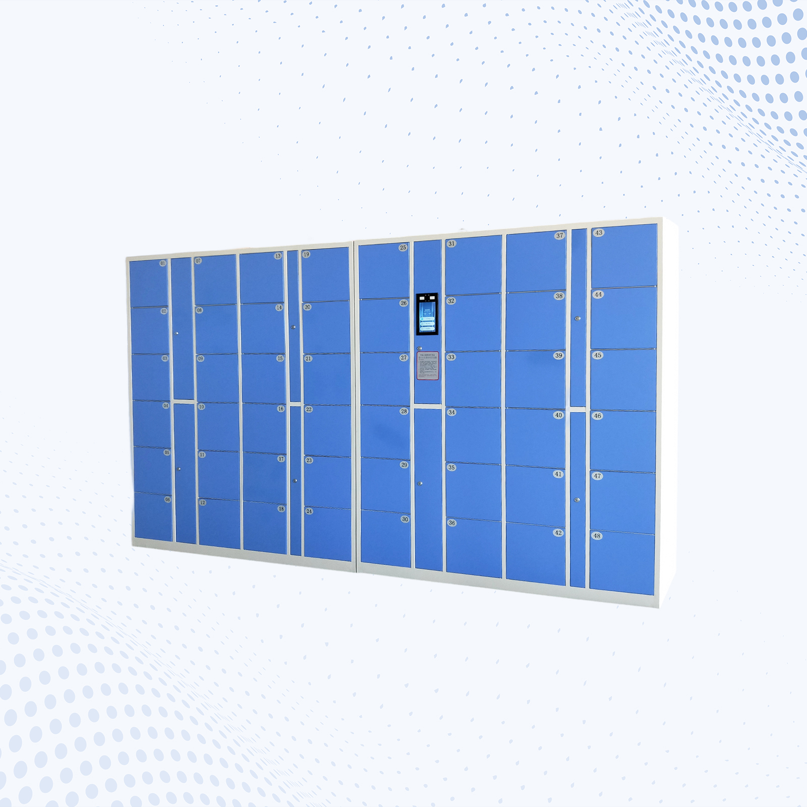 总体尺寸:W3000*D450*H1800MM 单格尺寸:W280*D450*H280MM 1、采用0.8MM优质冷扎/镀锌钢板,结构牢固;柜体表面经除锈、打磨喷塑,具有耐腐蚀、耐老化;电控锁采用棘爪式结构,360度防撬、防插。 2、表面静电粉体烤漆. 3、用 7 寸触摸屏+双目活体摄像头,存取物过程显示屏提示、语音播报,更加人性化; 4、管理员可指定开柜、可一键全开所有柜门; 5、支持选配外置指纹刷卡模块,选配后支持人脸、密码、卡、指纹四种验证方式 6、支持单人脸验证开柜、人脸/密码/卡/指纹任意方式验证开柜、人脸+(密码/卡/指纹) 双重验证开柜