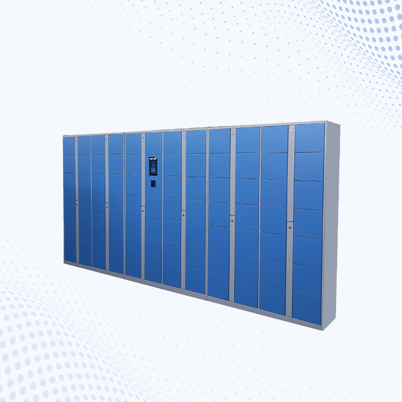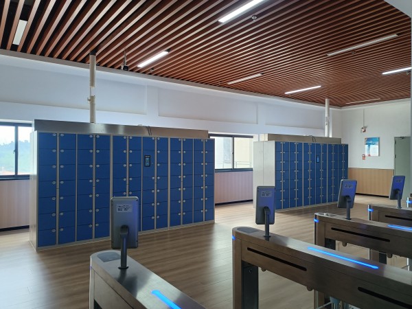 总体尺寸:W3600*D4000*H1800MM 单格尺寸:W260*D400*H240MM 1、采用0.8MM优质冷扎/镀锌钢板,结构牢固;柜体表面经除锈、打磨喷塑,具有耐腐蚀、耐老化;电控锁采用棘爪式结构,360度防撬、防插。 2、表面静电粉体烤漆. 3、用 7 寸触摸屏+双目活体摄像头,存取物过程显示屏提示、语音播报,更加人性化; 4、管理员可指定开柜、可一键全开所有柜门; 5、支持选配外置指纹刷卡模块,选配后支持人脸、密码、卡、指纹四种验证方式 6、支持单人脸验证开柜、人脸/密码/卡/指纹任意方式验证开柜、人脸+(密码/卡/指纹) 双重验证开柜 7、柜子顶部可设计通风管,通风管与箱格内的通风孔相通。通过抽风循环系统快速抽湿,维持鞋柜干燥环境