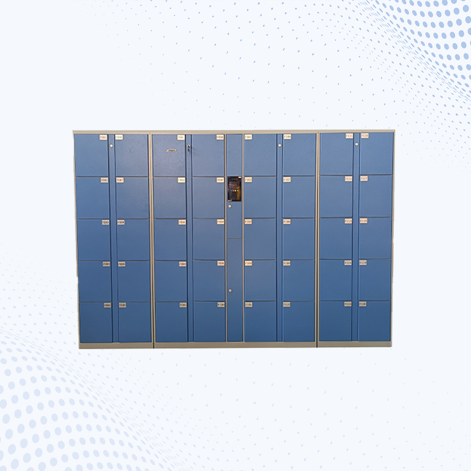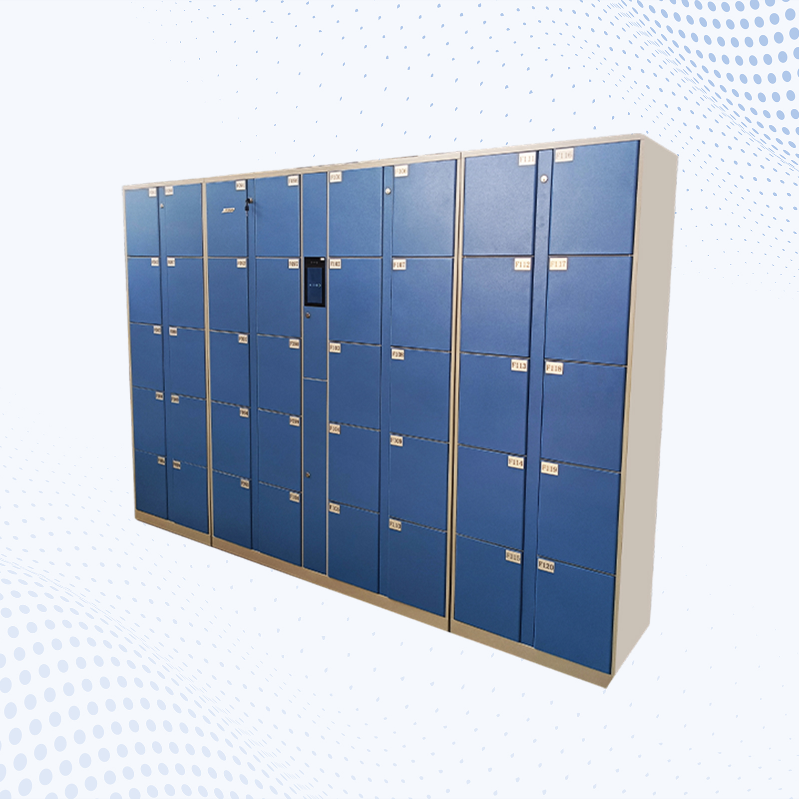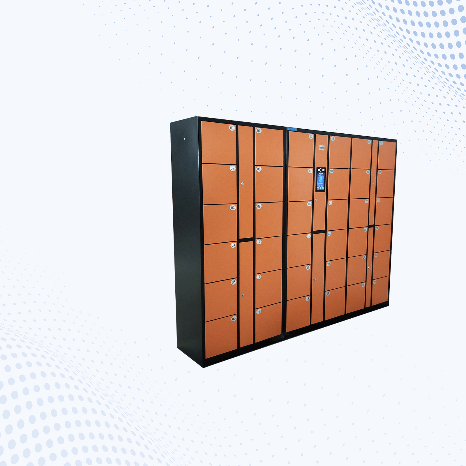 总体尺寸:W2300*D400*H1800MM 单格尺寸:W280*D400*H340MM 1、采用0.8MM优质冷扎/镀锌钢板,结构牢固;柜体表面经除锈、打磨喷塑,具有耐腐蚀、耐老化;电控锁采用棘爪式结构,360度防撬、防插。 2、表面静电粉体烤漆. 3、用 7 寸触摸屏+双目活体摄像头,存取物过程显示屏提示、语音播报,更加人性化; 4、管理员可指定开柜、可一键全开所有柜门; 5、支持选配外置指纹刷卡模块,选配后支持人脸、密码、卡、指纹四种验证方式 6、支持单人脸验证开柜、人脸/密码/卡/指纹任意方式验证开柜、人脸+(密码/卡/指纹) 双重验证开柜 7、柜子顶部可设计通风管,通风管与箱格内的通风孔相通。通过抽风循环系统快速抽湿,维持鞋柜干燥环境